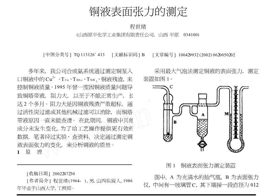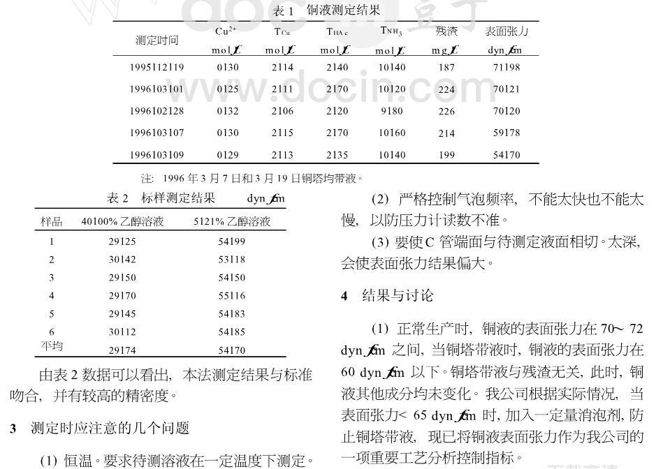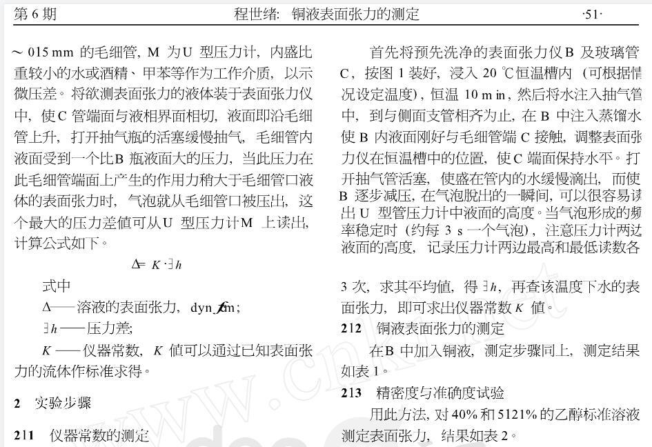 銅液表面張力的測定
