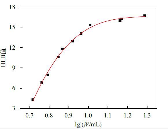 式中,Y為表面活性劑的HLB值;X為lg(W/mL),即表面活性劑測(cè)得的水?dāng)?shù)取對(duì)數(shù)值。