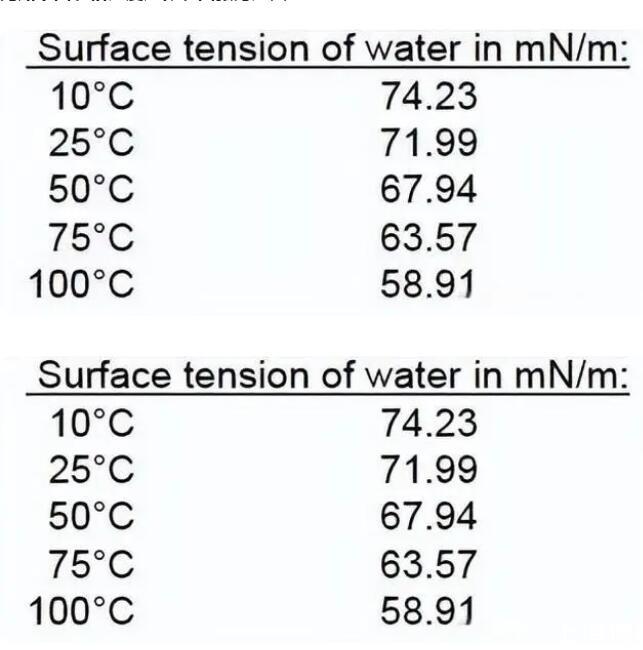 比如下面表格在10攝氏度時不同液體的表面張力差異很大
