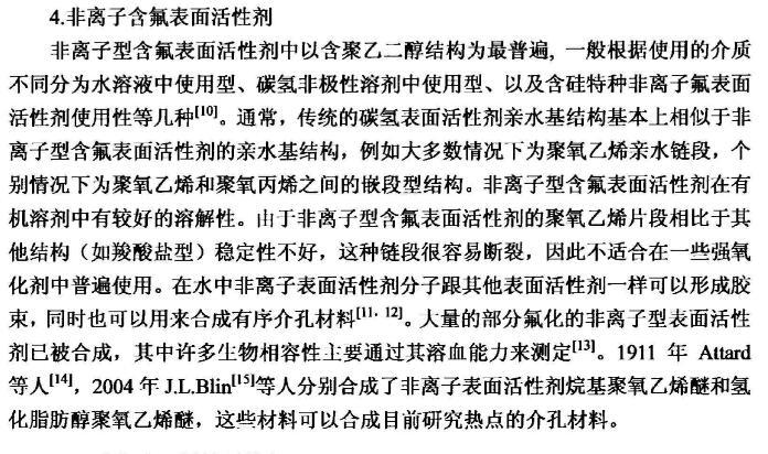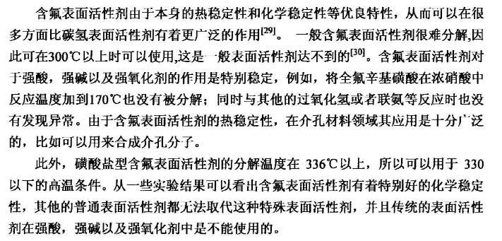 【摘要】:本論文首先對新型含氟表面活性劑的特性,應(yīng)用領(lǐng)域,國內(nèi)外研究進(jìn)展進(jìn)行了全面的綜述。含氟表面活性劑是目前最受青睞的特種表面活性劑,相比于傳統(tǒng)的碳?xì)浔砻婊钚詣砻婊钚詣┑挠昧可伲档退芤罕砻鎻埩Φ淖饔脧?qiáng),同時(shí)可以跟其它表面活性劑起到很好的復(fù)配效果,可以應(yīng)用于消防、鉻霧抑制劑、造紙、冶金、起泡與消泡劑的合成等很多領(lǐng)域。