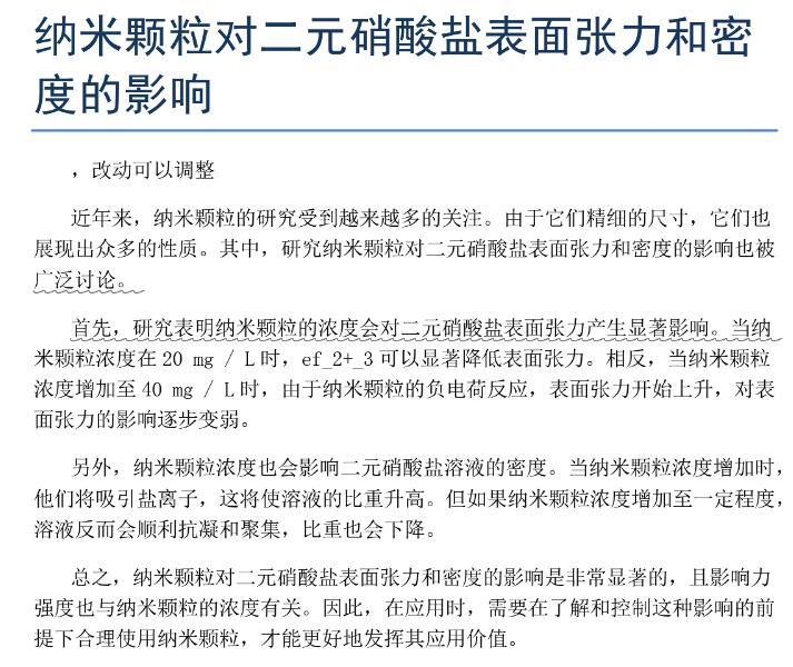 納米顆粒對二元硝酸鹽表面張力和密度的影響