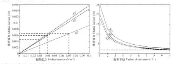 圖2基質吸力隨表面張力和曲率半徑的變化曲線