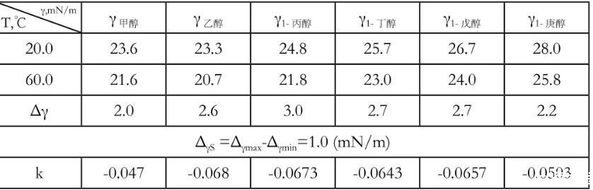 表3醇類表面張力γ/(mN/m)測(cè)定數(shù)據(jù)表格