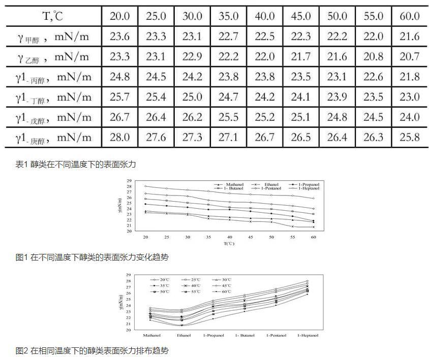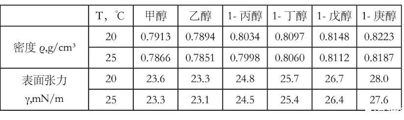 表面張力的意義,醇類在不同溫度下的表面張力測(cè)定數(shù)據(jù)