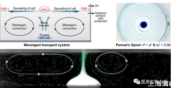馬蘭戈尼效應(yīng)驅(qū)動(dòng)液體鋪展及其生成圖案,以及液面下方溶液中的馬蘭戈尼對(duì)流